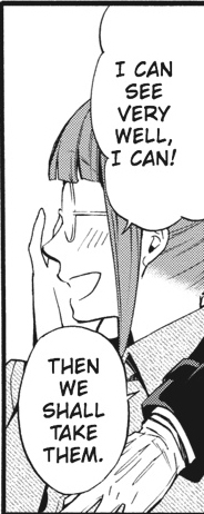下記のコマの「すごく良く見えますだ!」は“I can see very well , I can!”とI canを繰り返して訳しました。