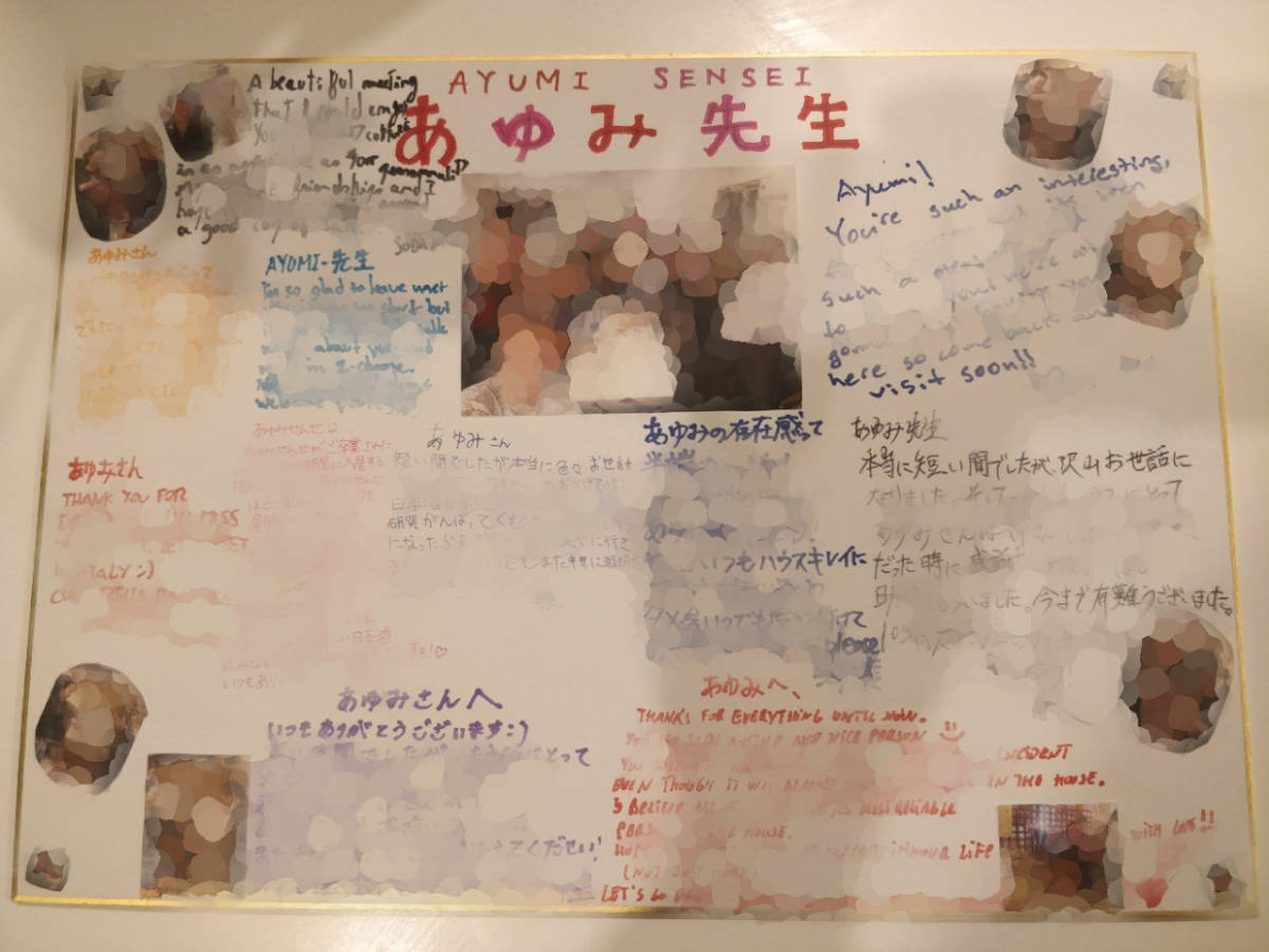 ▼ハウスメイトにもらった寄せ書き。みんな本当にありがとう!