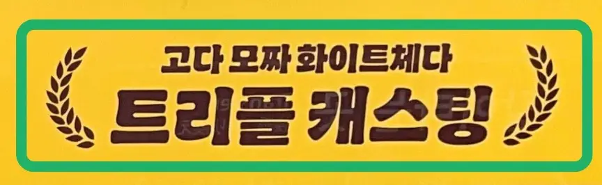 商品名に 모짜 とあったので、てっきりモッツァレラだけを使っているのだと思ったら、ゴーダやホワイトチェダーも使っているのですね。캐스팅 は直訳すると「キャスティング」ですが、ここでは日本語的になじみがいいように「キャスト」と訳してみました。