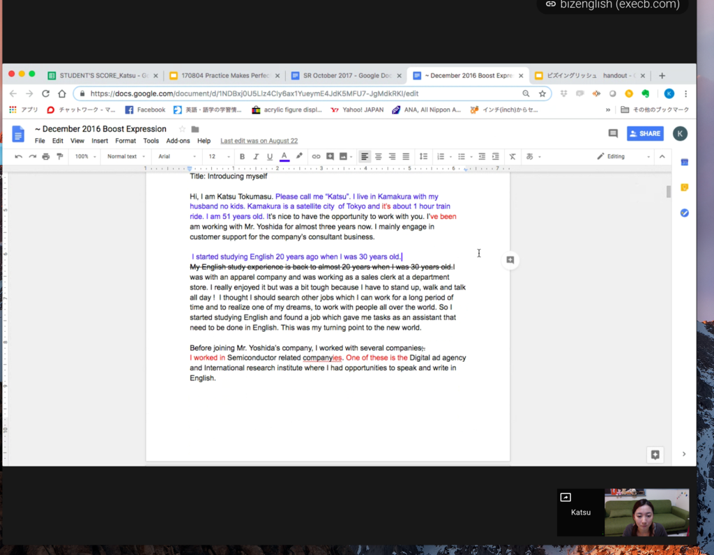 - レッスンはGoogleのドキュメントとハングアウトを使用