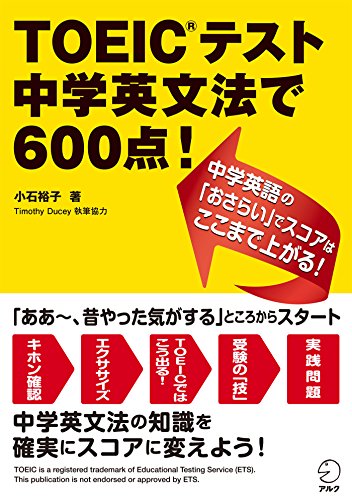中学英語もわからない!と基礎力に不安がある方には『TOEIC(R)テスト 中学英文法で600点!』がおすすめです。中学英文法を復習しながら「その文法項目がTOEICにどう出題されるのか」をしっかり押さえられます。