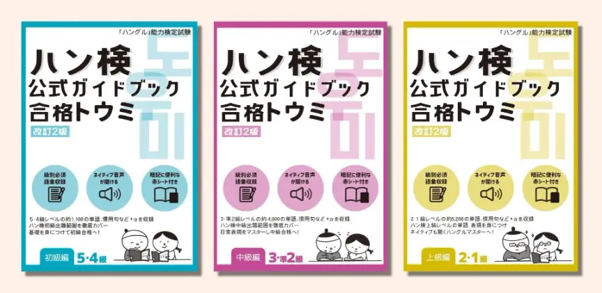 「ハングル」能力検定試験(通称:ハン検)は、日本語を母語とする学習者のための韓国語・朝鮮語検定試験です。その公式ガイドブック『ハン検公式ガイドブック 合格トウミ』が、改訂2版として生まれ変わりました。