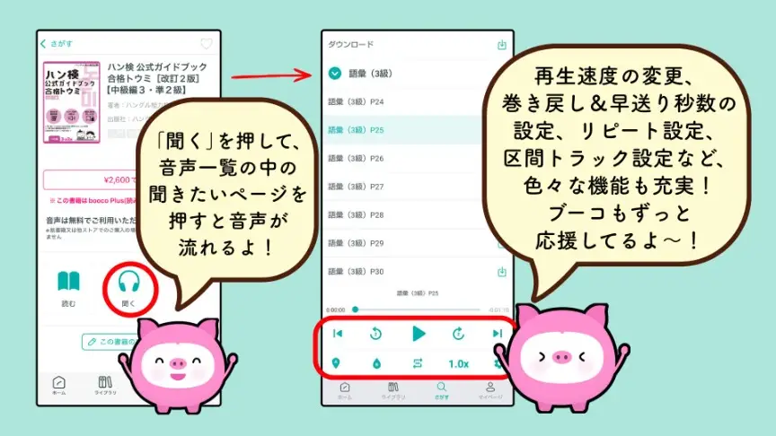booco で各級に直接行けるリンクを用意しましたので、「今すぐ音声を聞いてみたい」「電子書籍のサンプルを見てたい」という方は下記からどうぞ!(初めてのインストールや起動の際は、アプリの説明などの案内が表示されることがありますのでご了承ください)