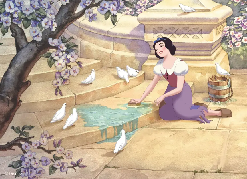 Her wicked stepmother, the Queen, feared that someday Snow White’s beauty would outshine her own.