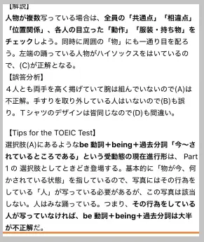 Tips for the TOEIC Test:Part 1 特有の構文