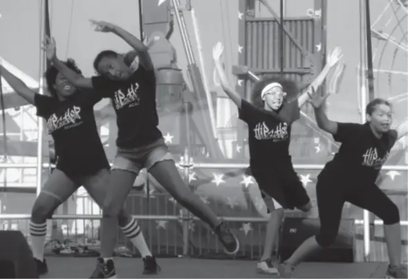 (C) あるダンサーはニーソックスを履いている。